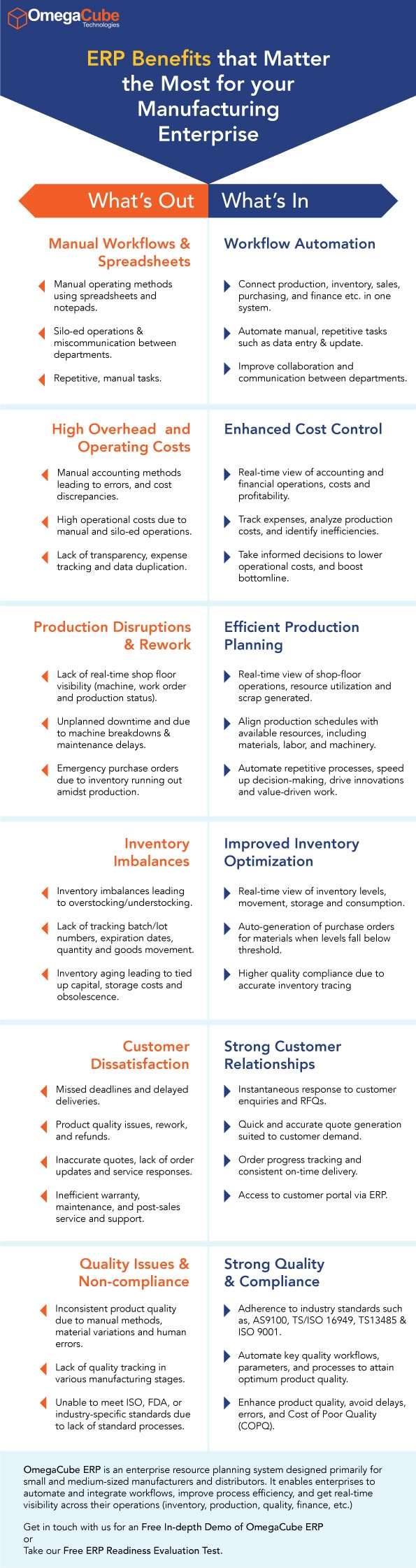 Read this infographic to know how an ERP software delivers numerous benefits for manufacturing/distribution enterprises.
