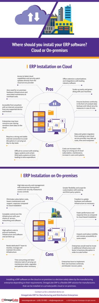 In this infographic, we explain the pros and cons of installing ERP software either on the cloud or on-premises so that you can take an informed decision when implementing an ERP.